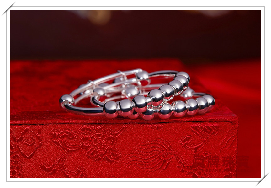 真牌珠宝 宝宝银饰足银儿童婴儿银饰 男女宝宝银手镯 单件